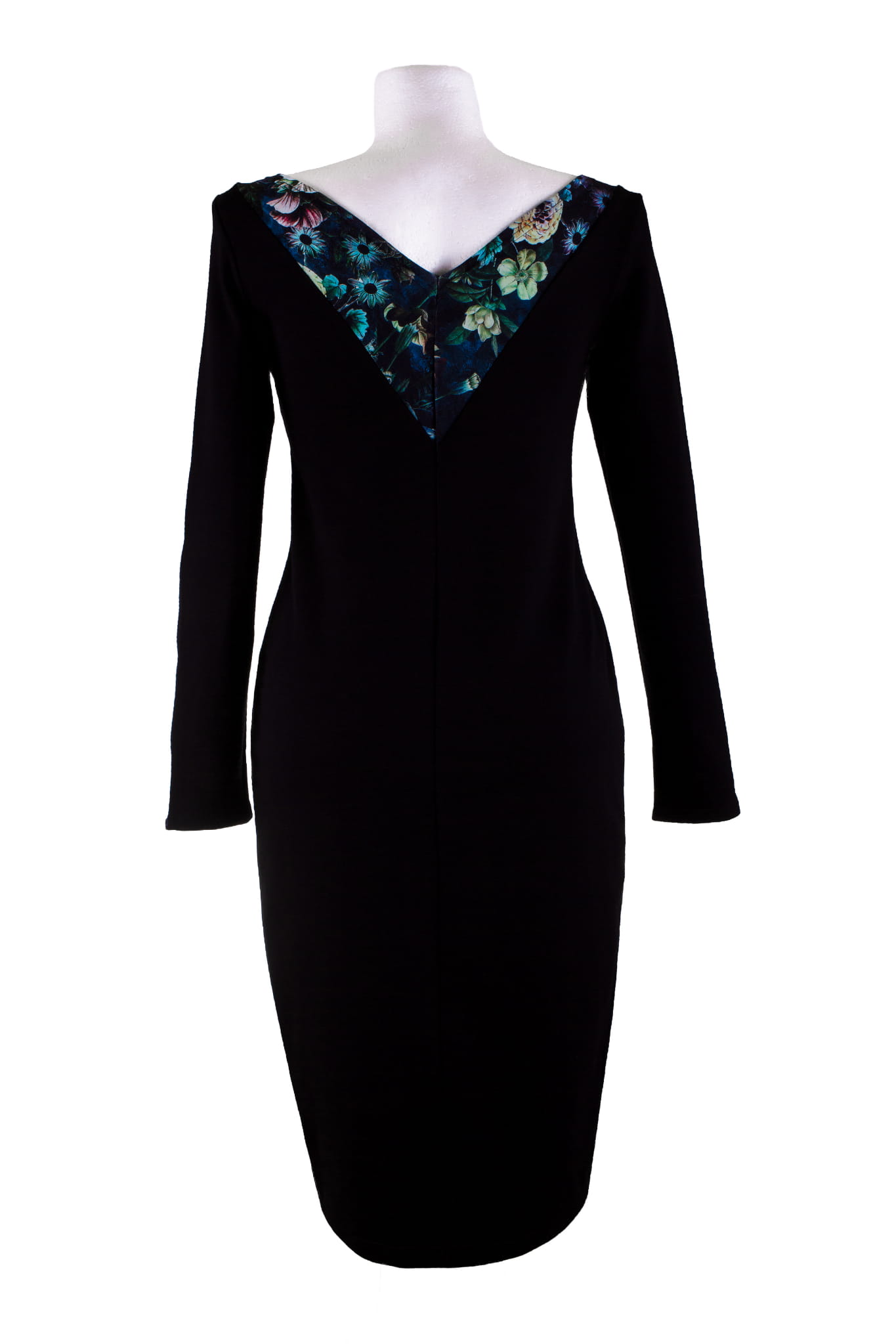 Sukienka WatchMyBack to prostota z pazurem: kształt klepsydry idealnie podkreśla sylwetkę, a pogłębiony, kontrastowy dekolt z tyłu nadaje charakteru.