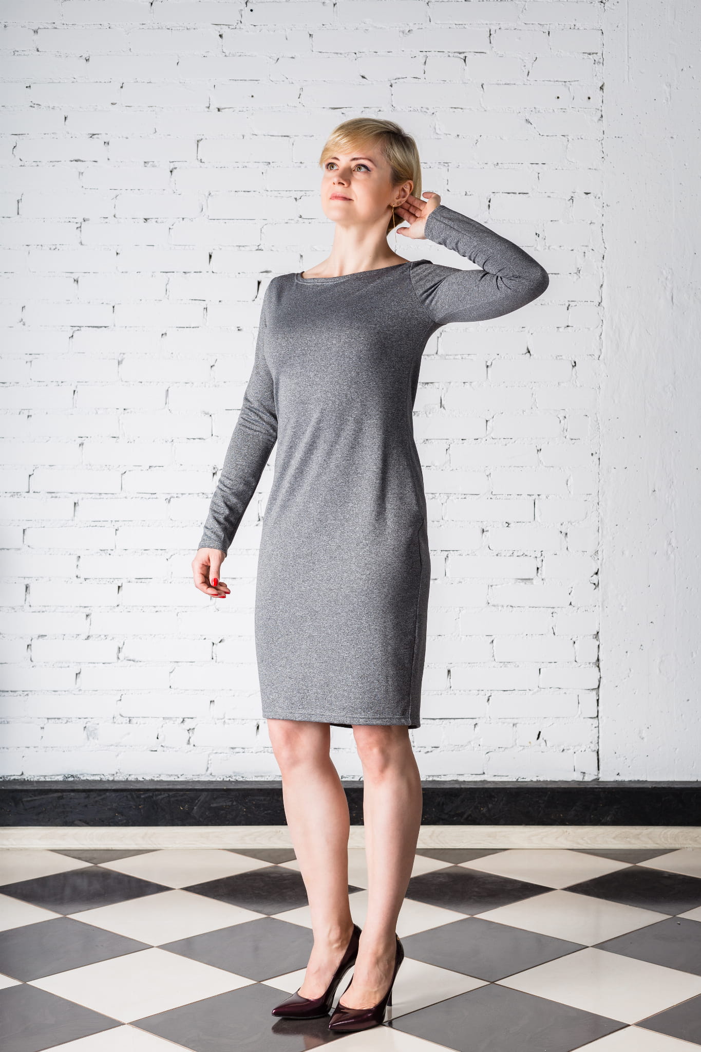 Sukienka wykonana jest z mięsistej dzianiny, zapewniającej wygodę, a jednocześnie zachowującej kształt.