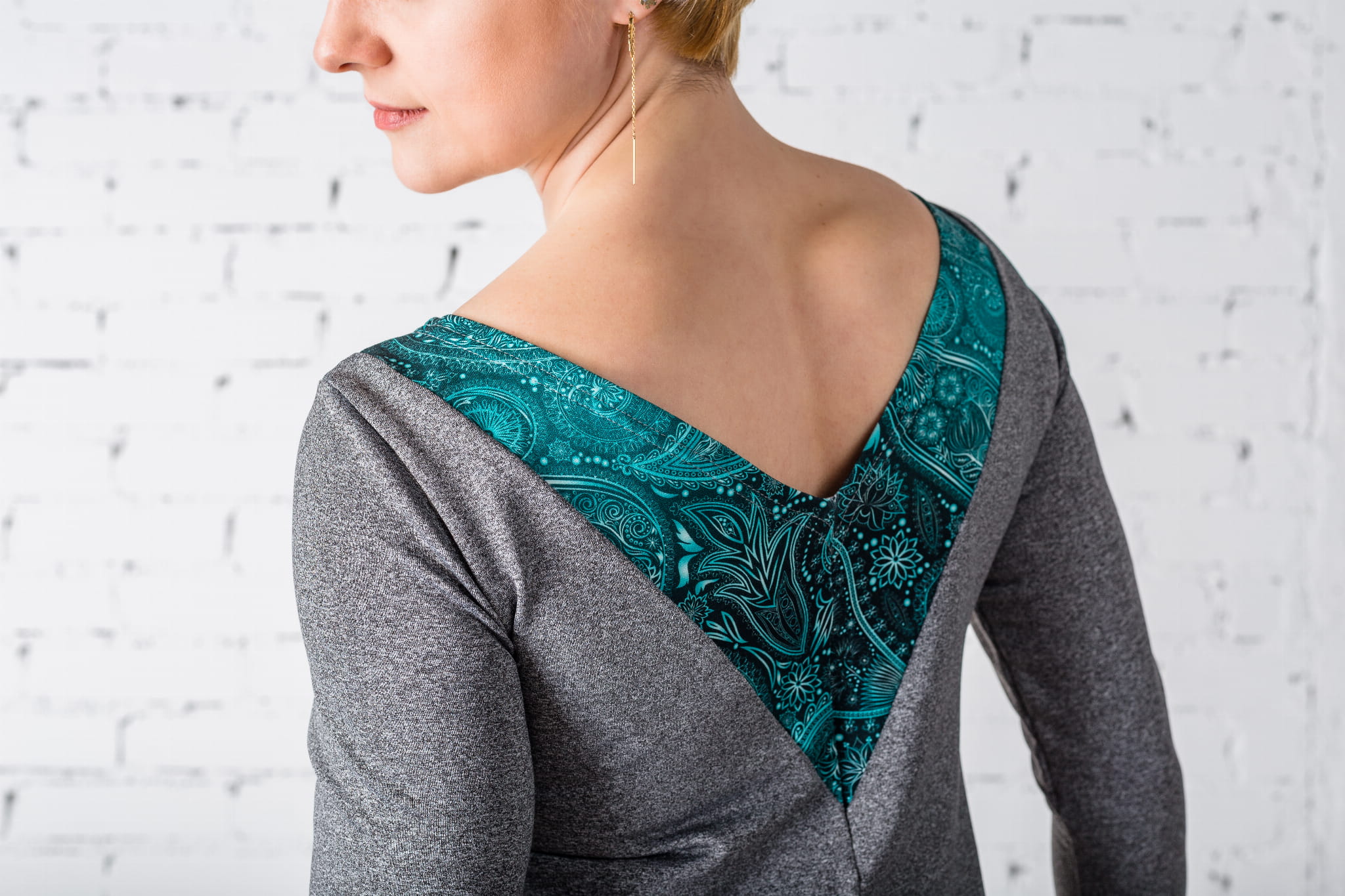 Sukienka WatchMyBack to prostota z pazurem: kształt klepsydry idealnie podkreśla sylwetkę, a pogłębiony, kontrastowy dekolt z tyłu nadaje charakteru.